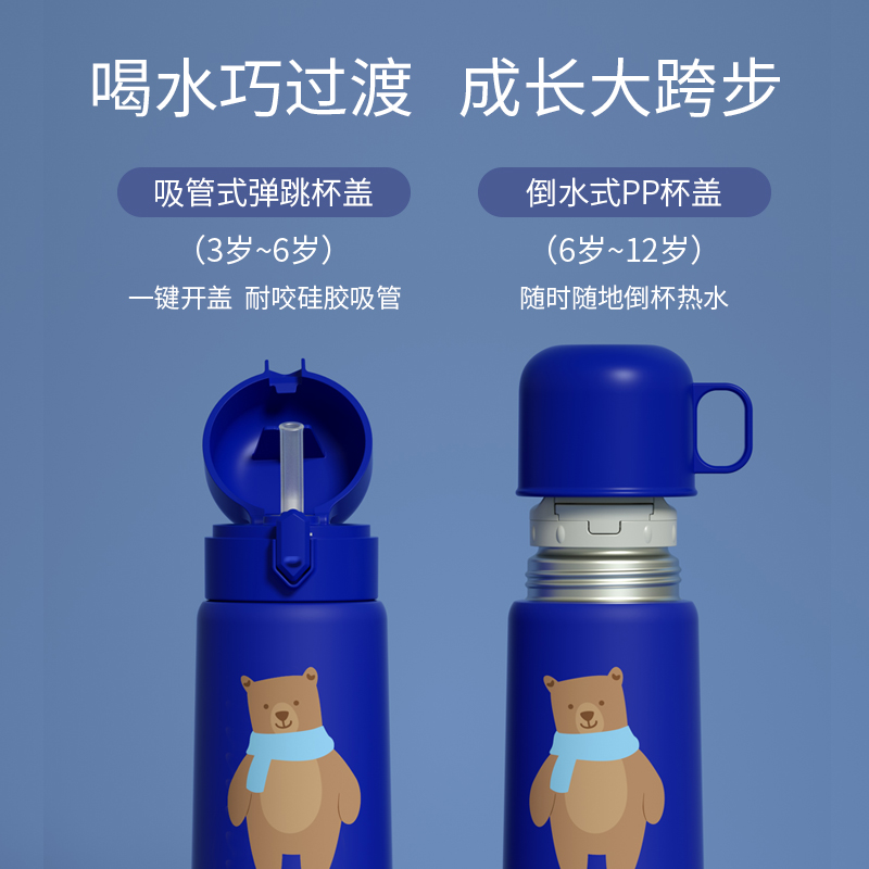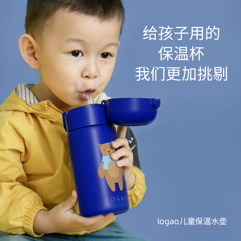 Logao Children's thermos cup with straw dual-use baby water cup out of the portable kindergarten baby thermos kettle