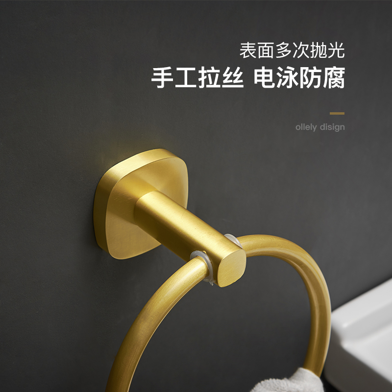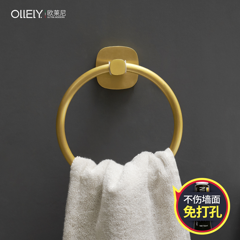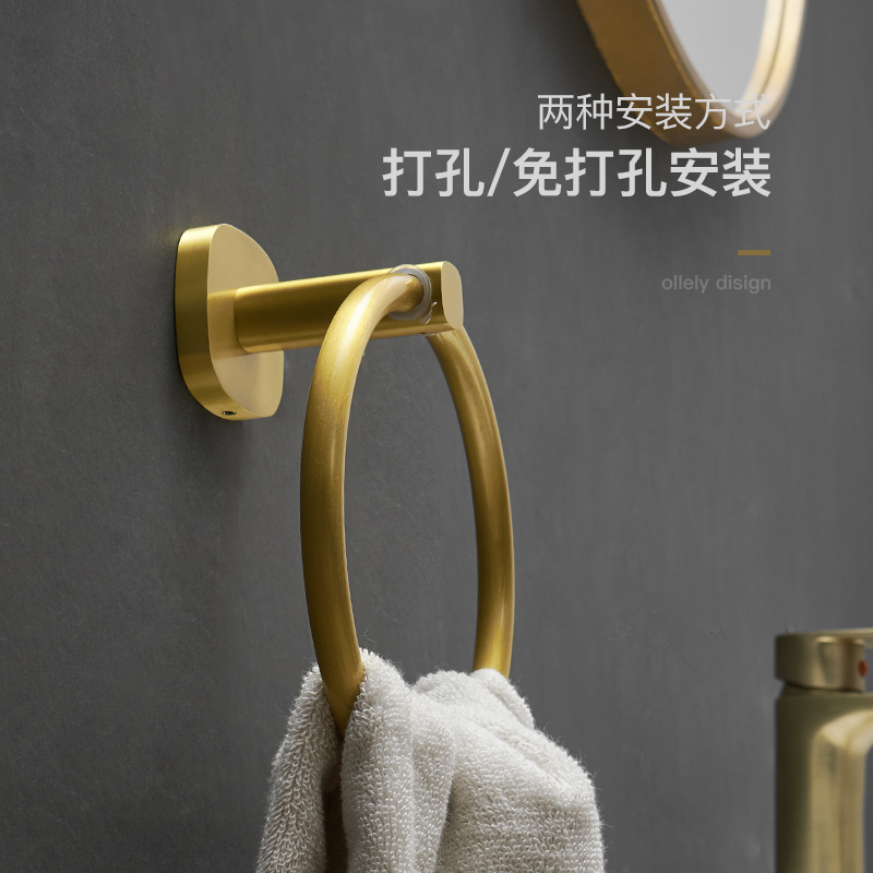 Perforated Nordic towel ring Bathrooms Towel Rack Wire Drawing Golden Brief space Aluminum round towels Hanging Make-up Room