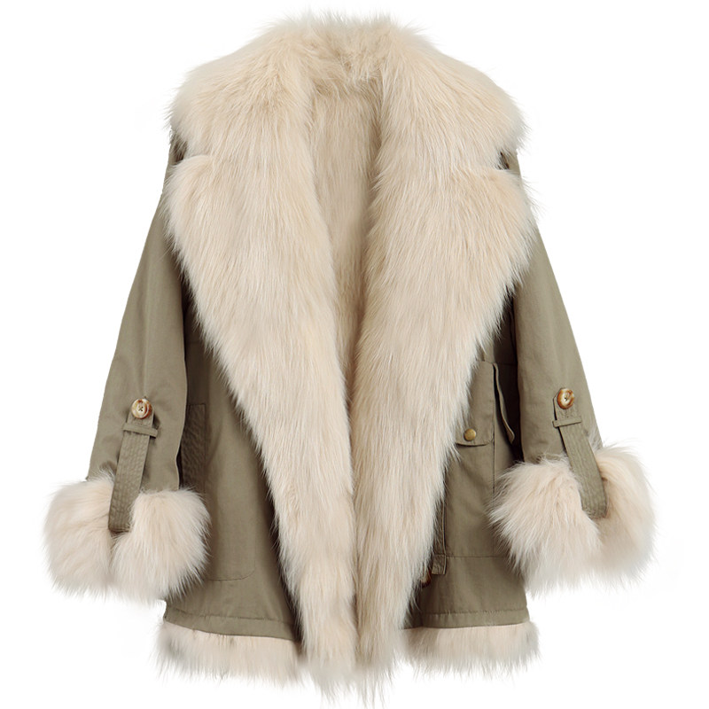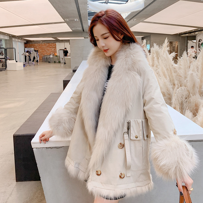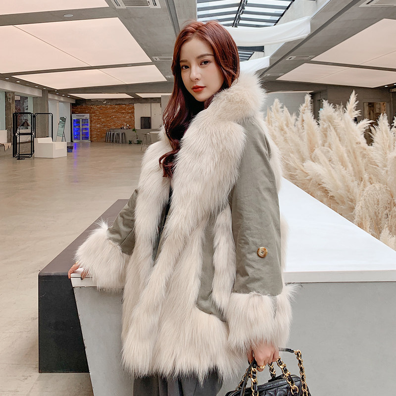 Suit collar two-sided fox fur liner Parker clothing women's long version 2021 winter new fur coat small