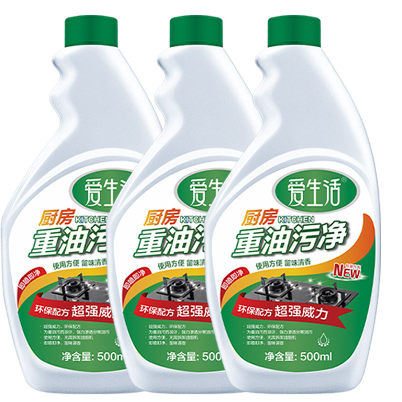 Special price promotion green leaf love life heavy oil stain net 3 bottles 3 nozzle kitchen hood to oil non-pungent 500ml