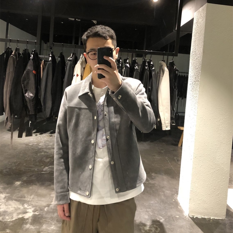 LA CALIFFA CR-X 3D Cut Haze Grey Velvet Suede Sheepskin Shirt Leather Jacket