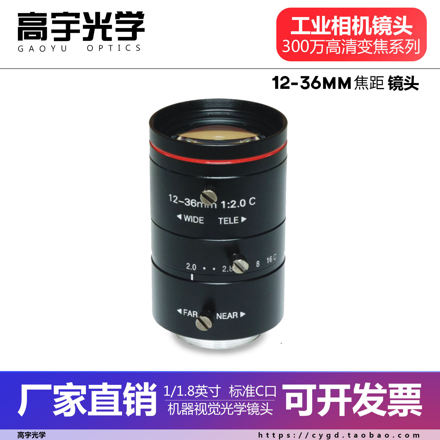 HD C-mount industrial camera lens zoom fixed focus optional 1 2 2 3 1 inch vision C-mount lens
