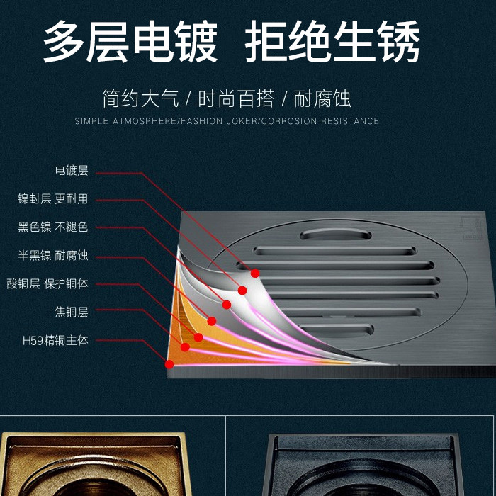 Diving Boat Gun Grey Floor Drain Deodorant Full Copper Washing Machine Dual-use Dressing Room Rectangular Deodorant Cover Flagship Store