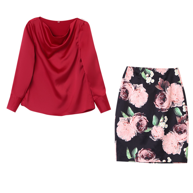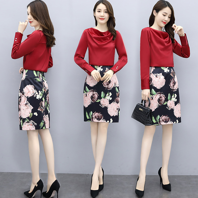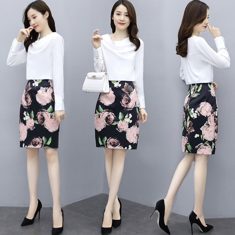 Light-cooked wind suit 2022 Fall new small woman taste T-shirt Hip Printed Step Skirt two sets
