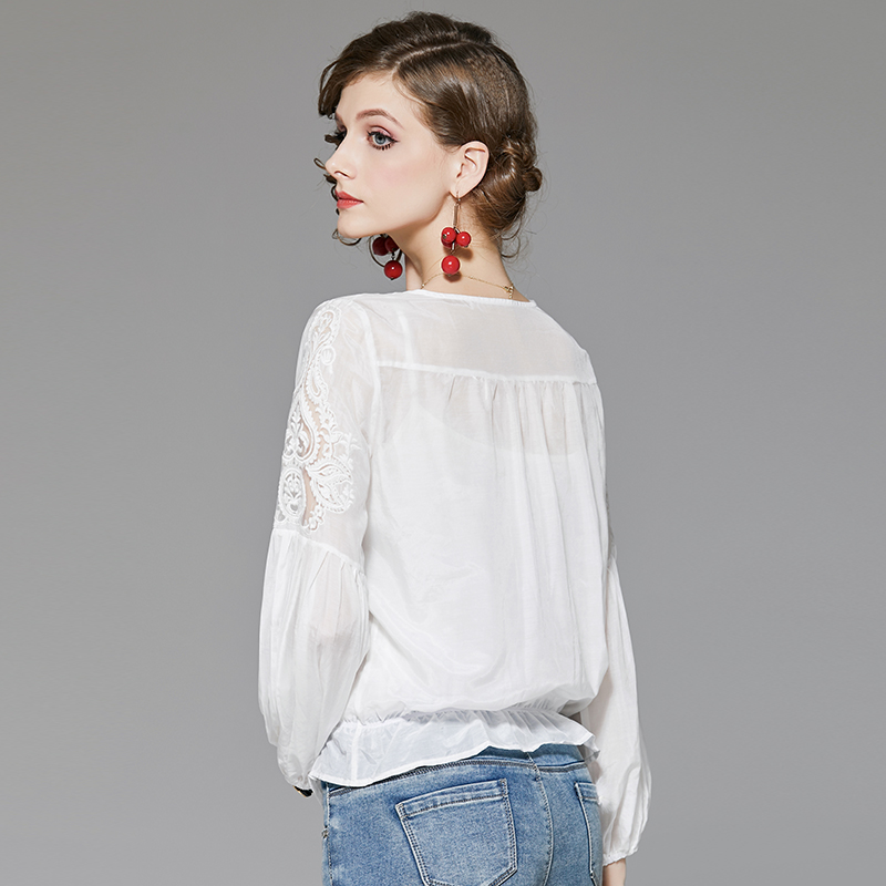 MAJE Kara early season light luxury new lace perspective real - sand silk white shirt with long sleeve tops
