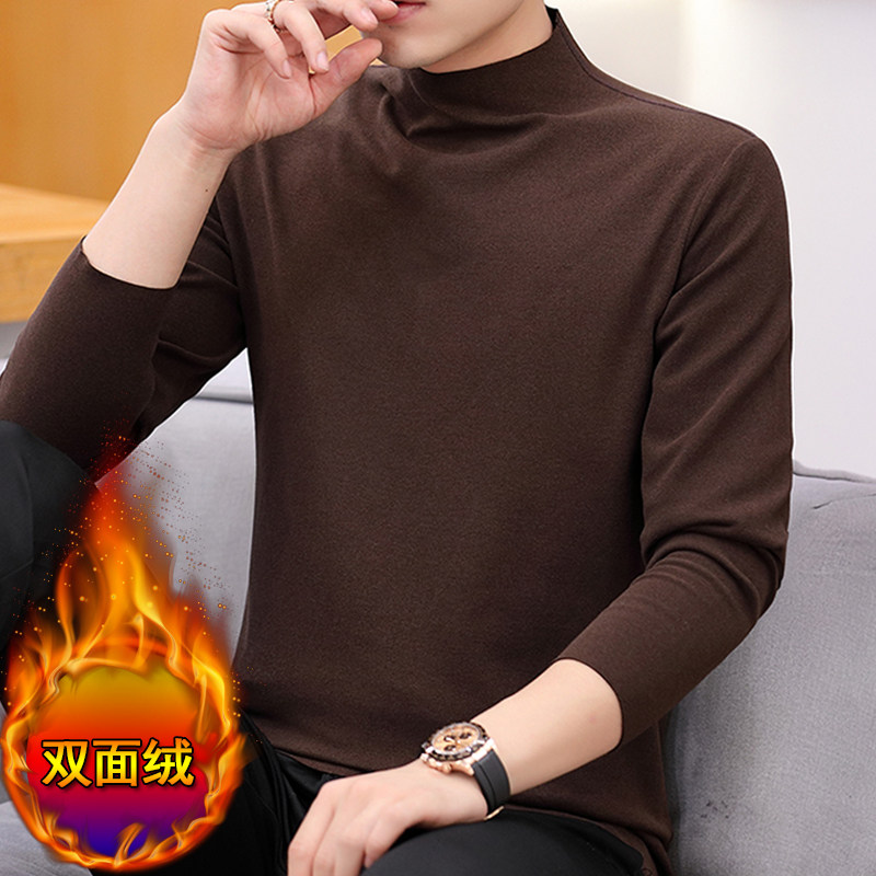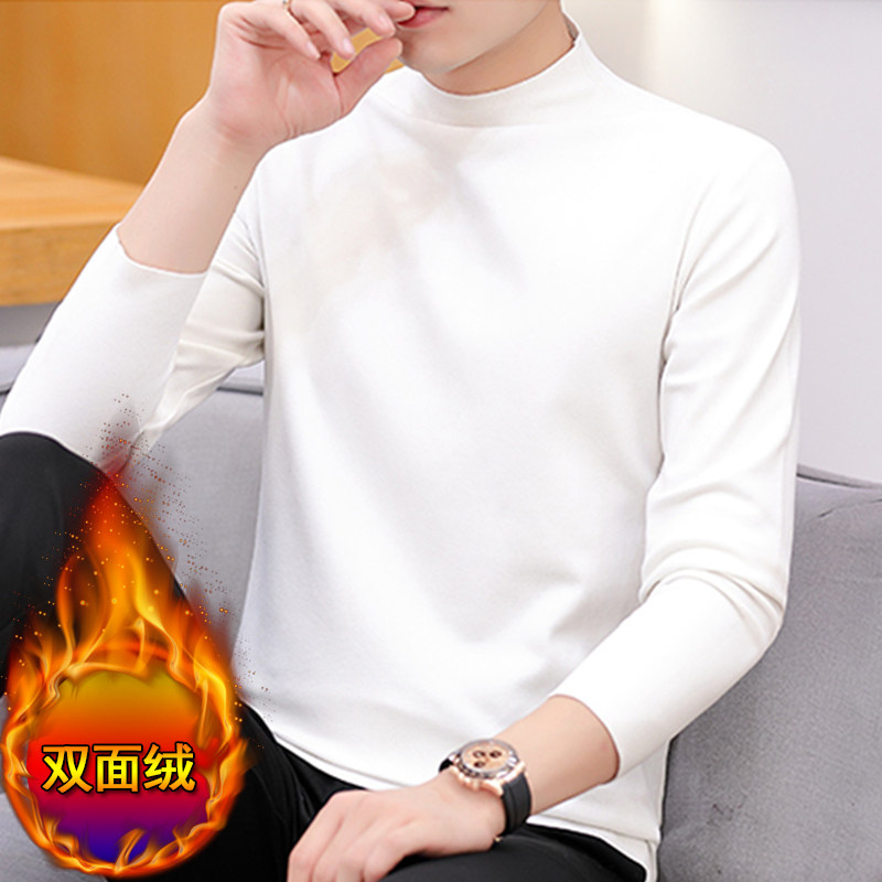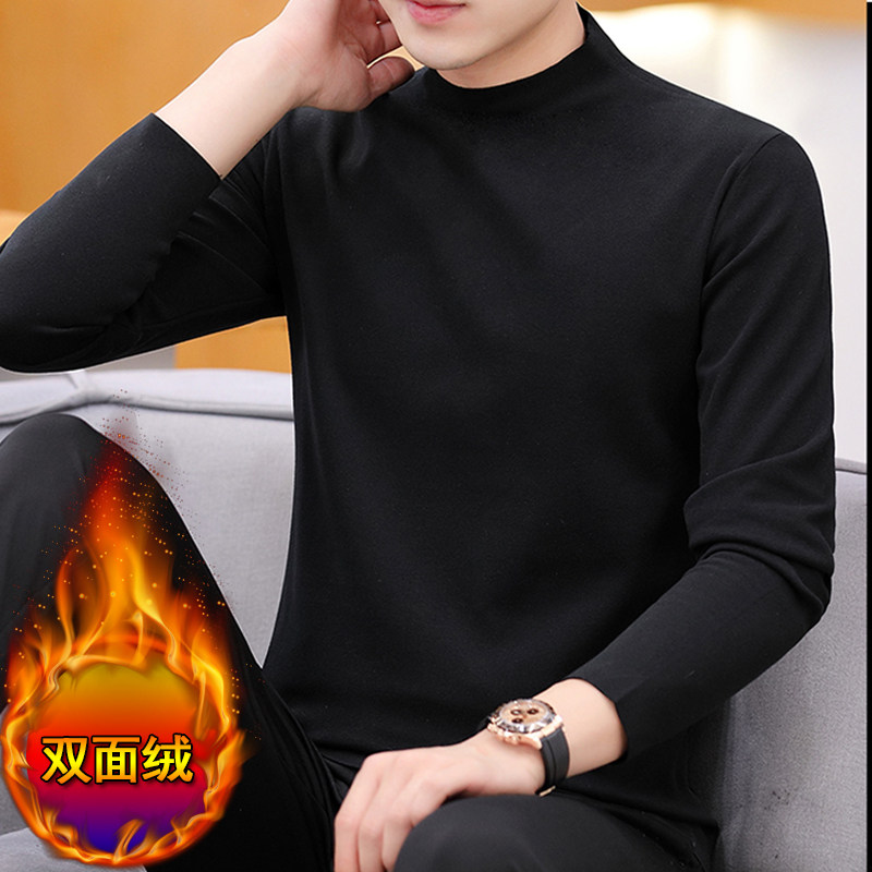 German velvet bottoming shirt men's seamless brushed warm top plus velvet thick autumn coat half turtleneck double-sided velvet heating T-shirt