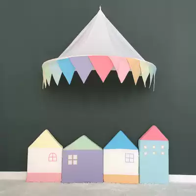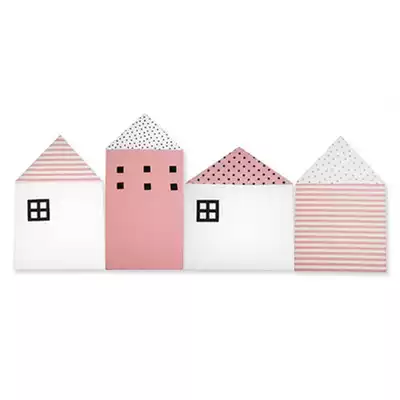 Colorful macarons (a group of 4 small houses) white background hand-painted (a group of 4 small houses) Pink line (a group of 4 small houses) black line (a group of 4 small houses)