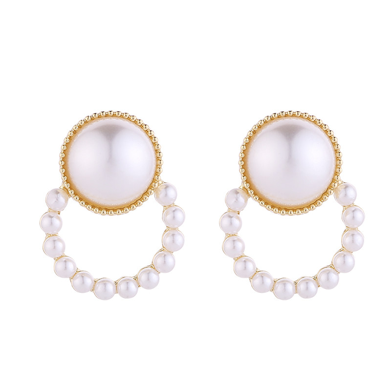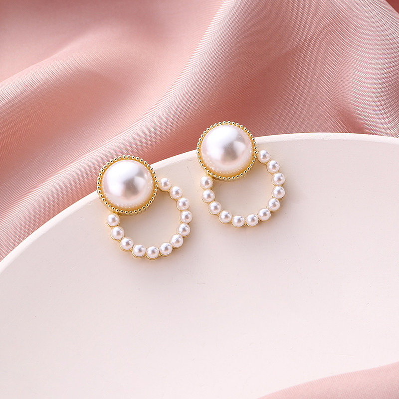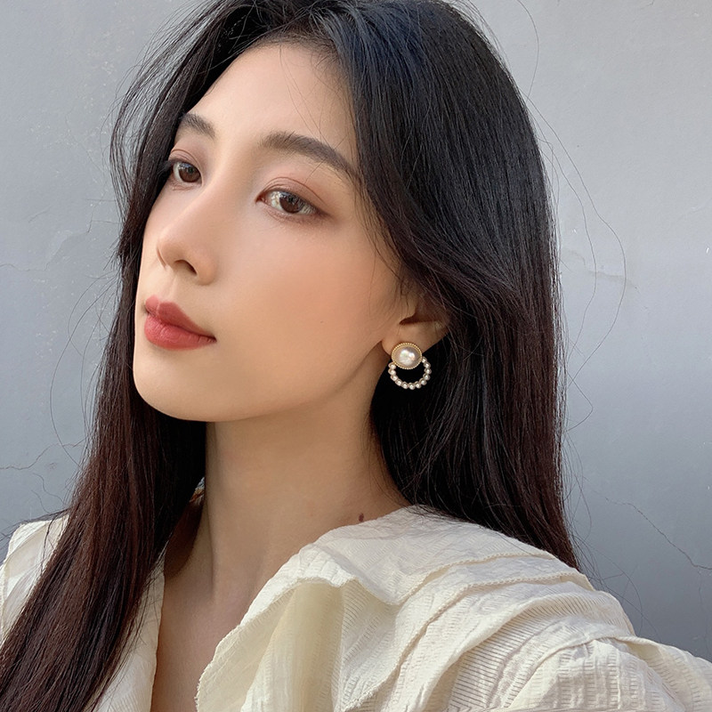 Pearl Geometric Circles Fashion Earrings Korea Temperament Net Red Advanced Sensational Ear Clip without earbuds