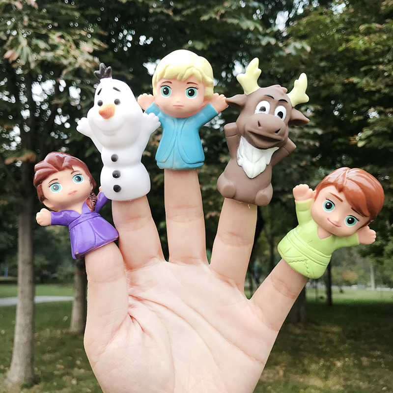 Child Finger Puppets Emulated Soft Silicone Dinosaur Cartoon Animal Ice And Snow Doll Baby Puzzle Interactive Toy Sets