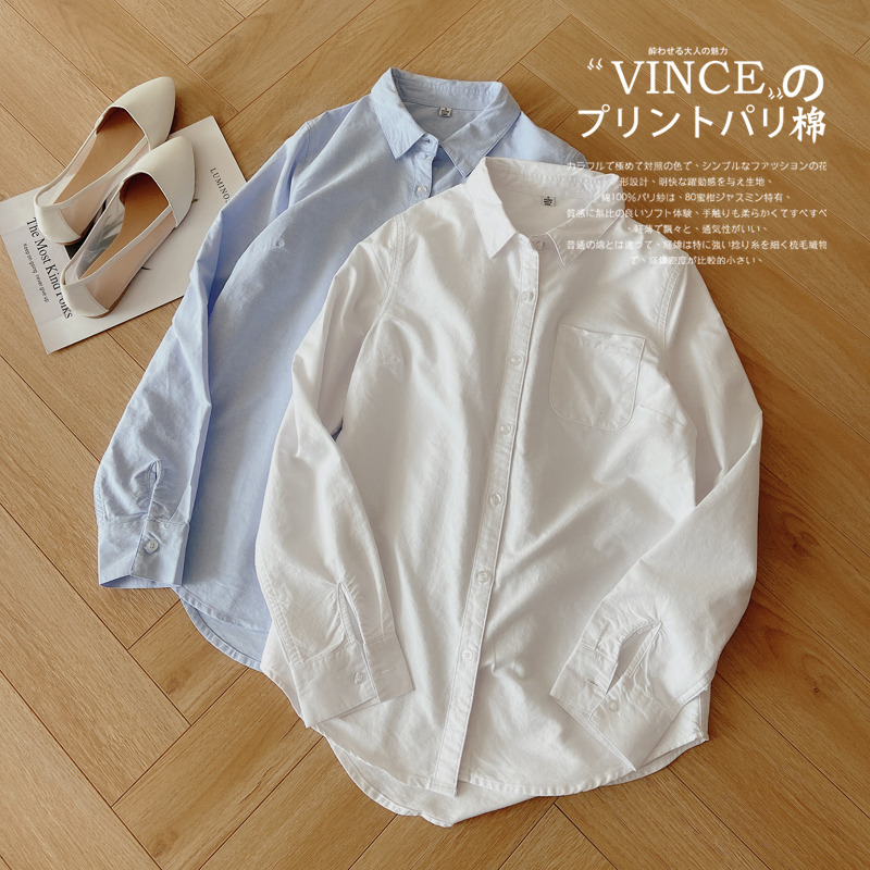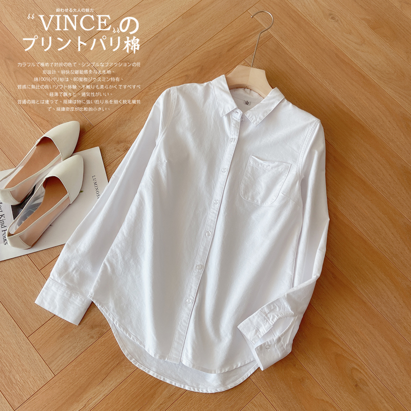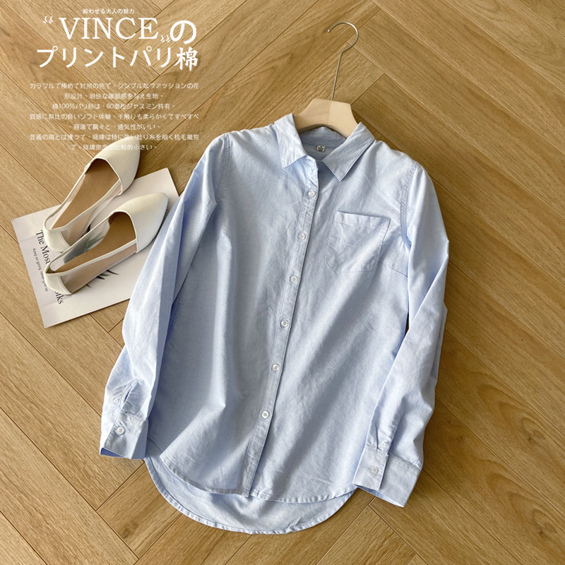 Luca Cocoa New Spring Autumn Style White Blue Pure Cotton Oxford Spinning Shirt Woman Long Sleeve 100 Hitch Professional Hit Bottom Casual Shirt