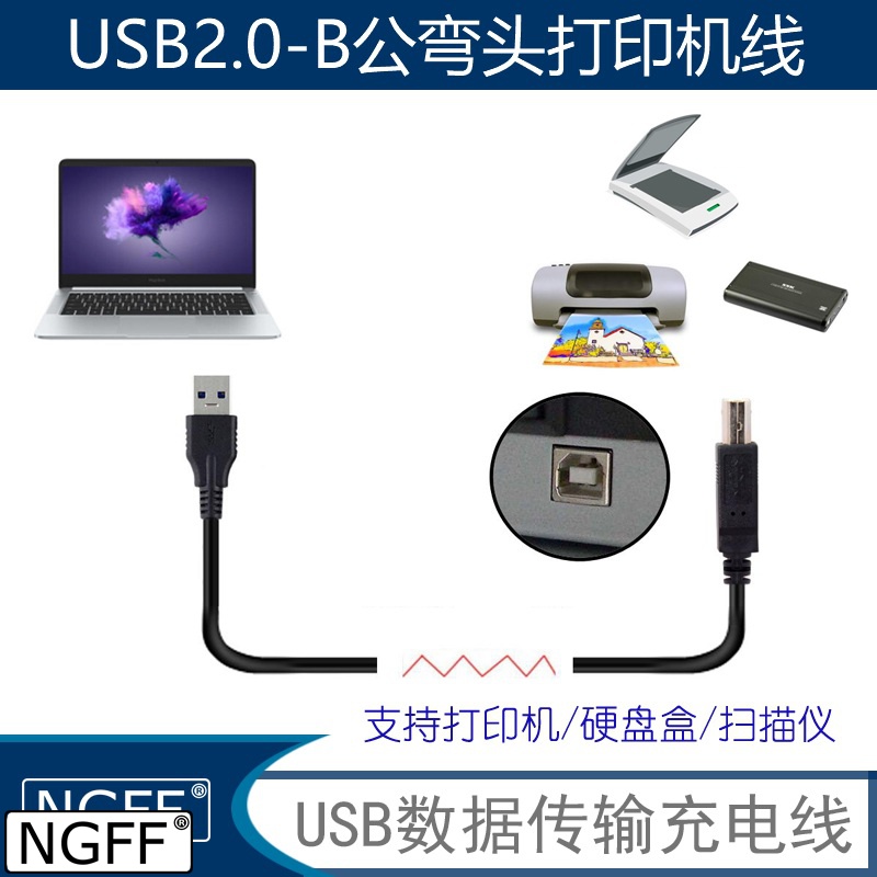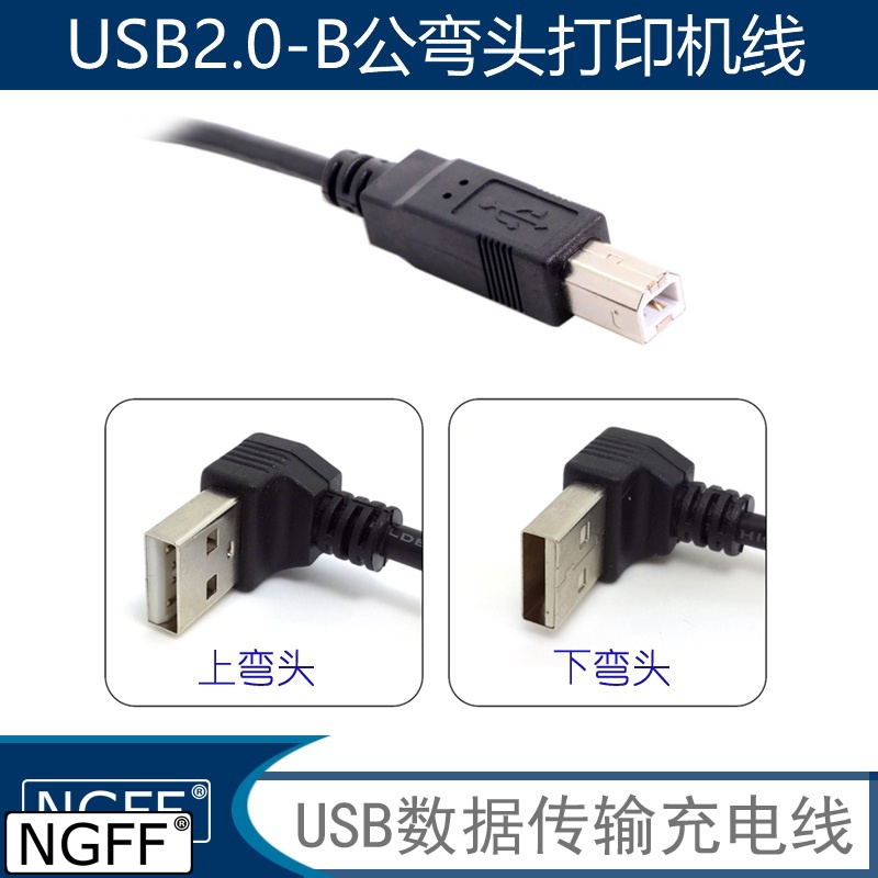 NGFF Right angle printer cable USB 2 0 male to B male elbow 90 degree printer HDD box scanner cable
