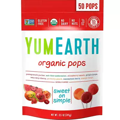yumearth imported from the United States without additives, gluten-free, wheat-free custard lollipop, fruit candy, baby snacks