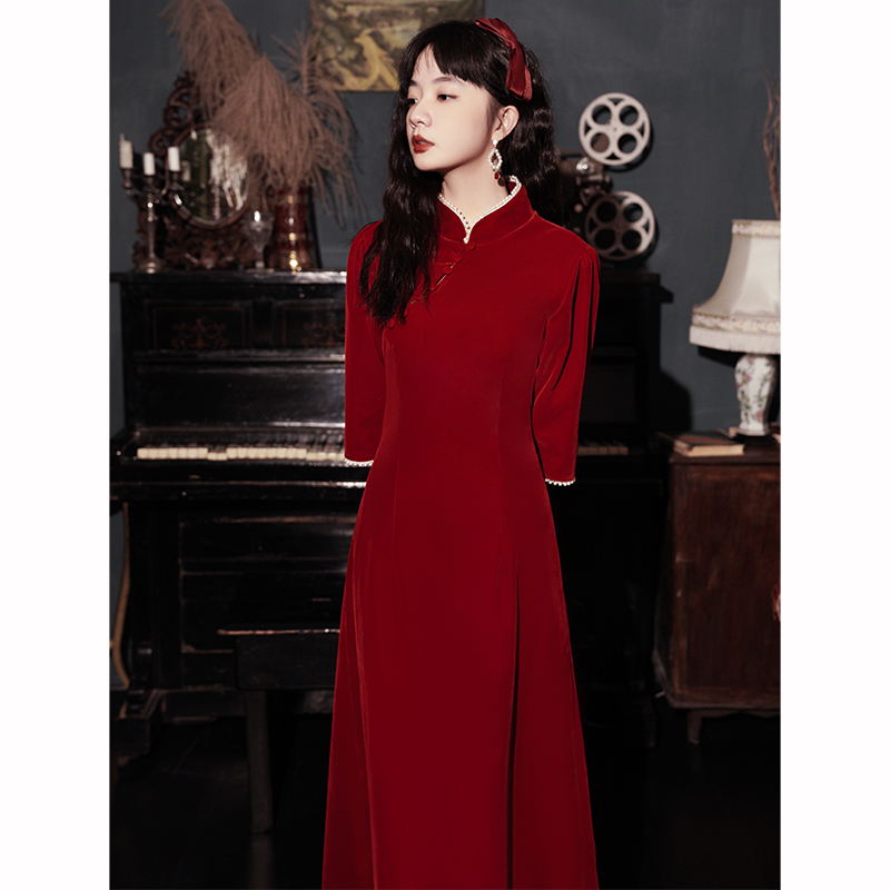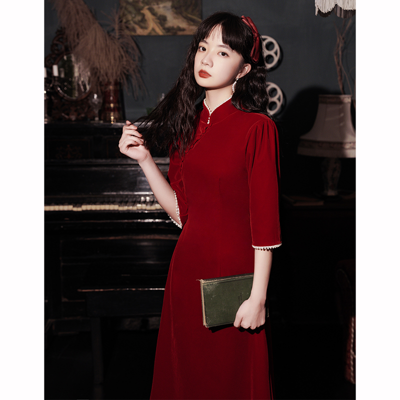 Wine red long section Wine red mid-length section (pearl skirt) (pearl collar) Wine red long section (pearl doll collar, pearl sleeves) Wine red long section (lace) (pearl sleeves)