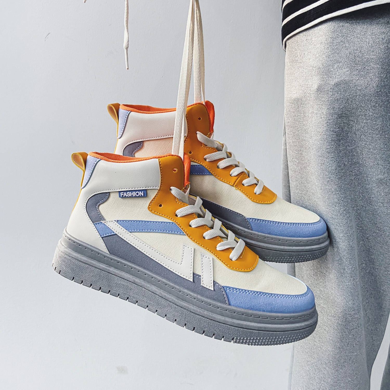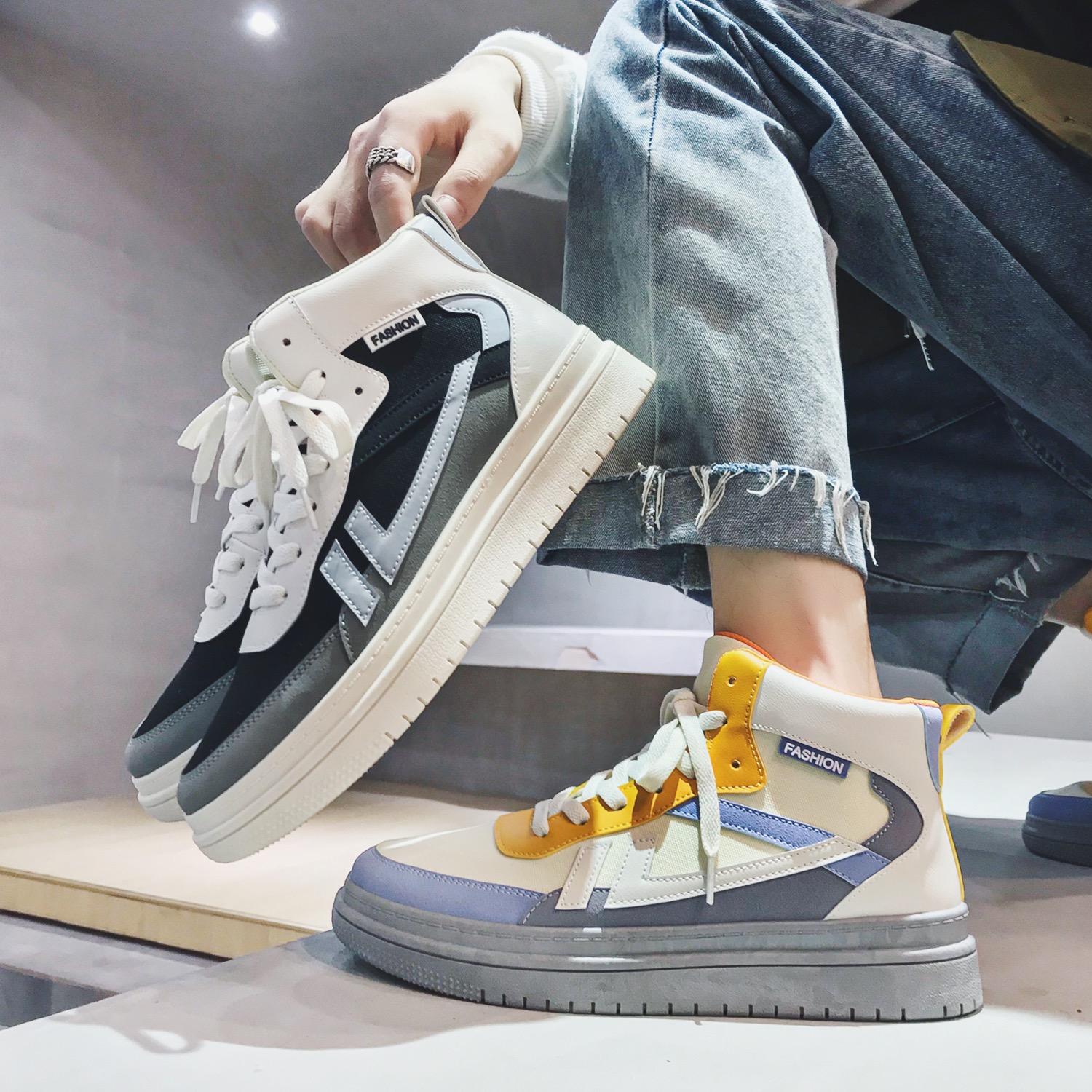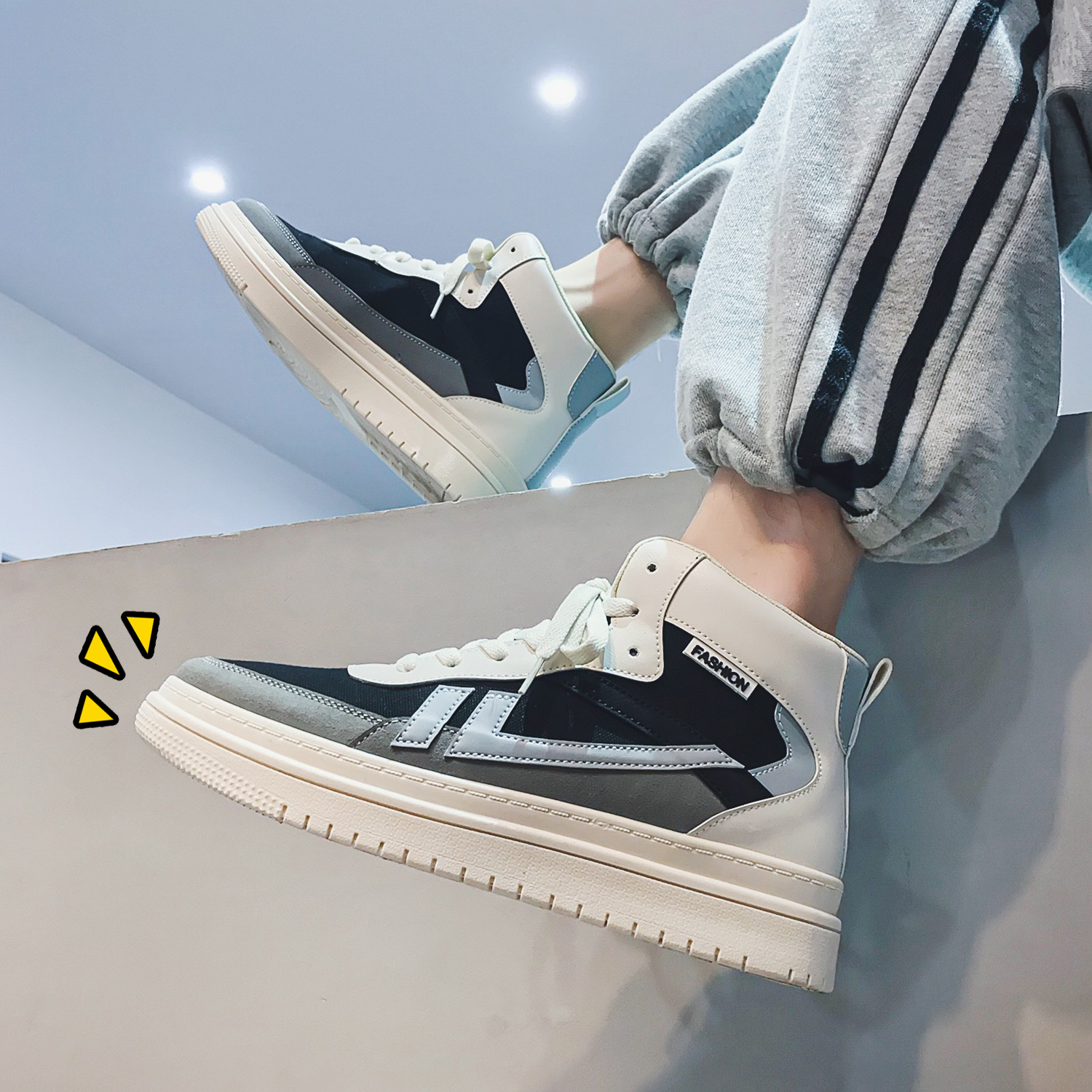 2020 New High Barrel Canvas Shoes Men's Shoes Middle School Shoes Korean Fashion Joker Sports Tide Shoes Summer and Autumn