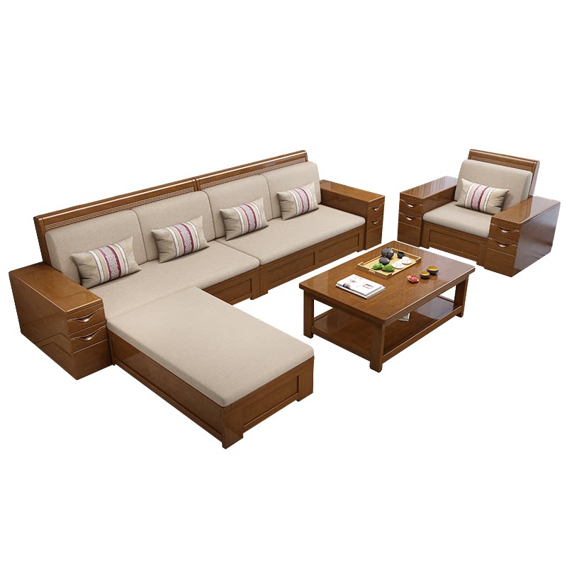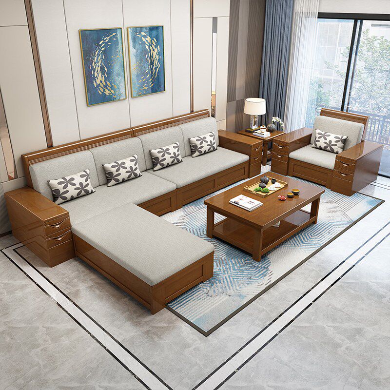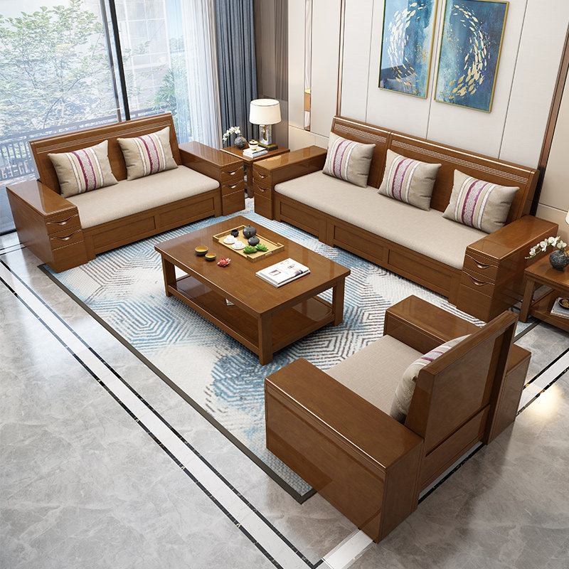 Chinese new style solid wood combination modern minimalist winter and summer dual-use storage fabric sofa living room high box wooden furniture