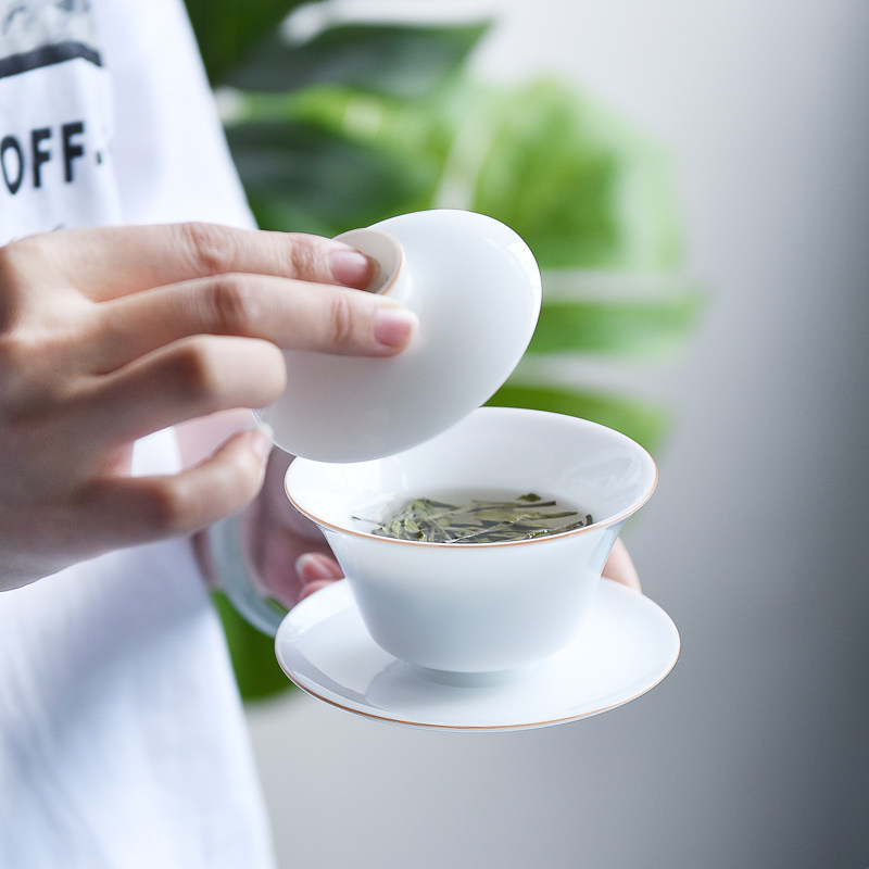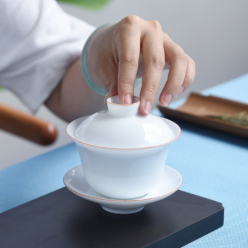 Deche sweet white porcelain three-tall cup cup single kung fu tea bowl manual thin fetal ceramic tea bowl household tea set