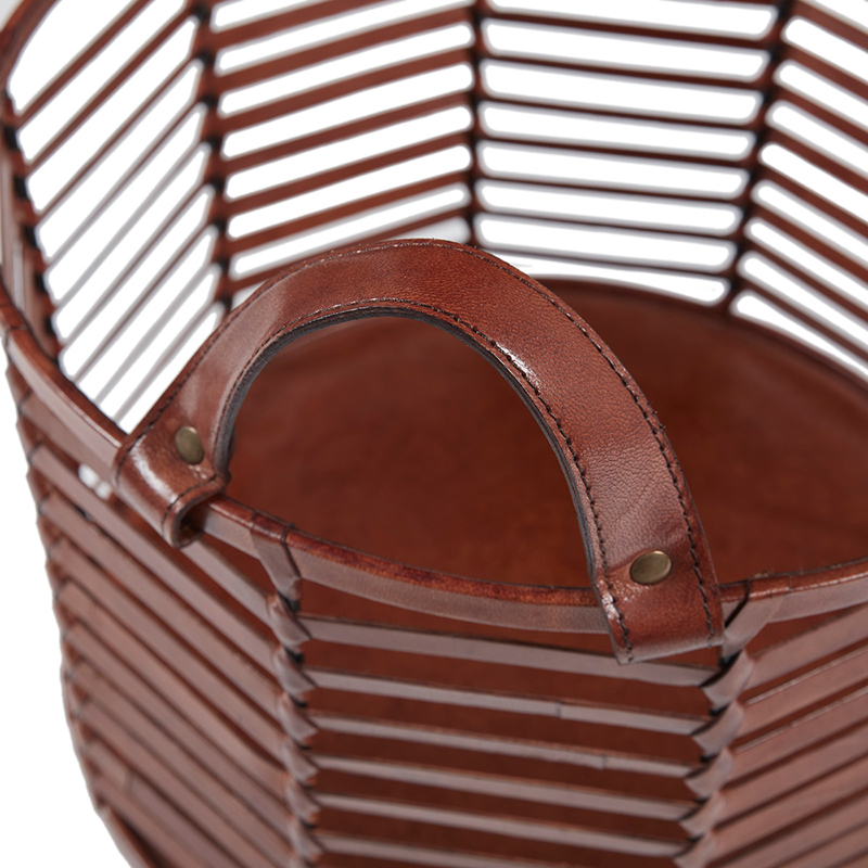 Harbor House American Home Accessories Leather Imported Storage Basket Vintage Leather Storage Basket Laude