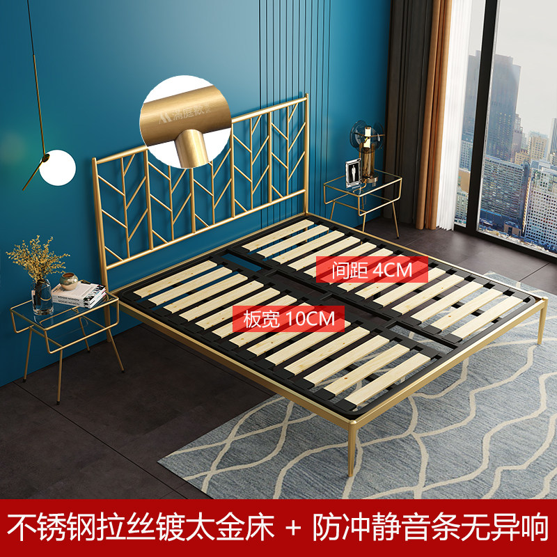 Light luxury stainless steel wrought iron bed modern simple 1.8m 1.5 meters double bed nordic ins wind princess bed