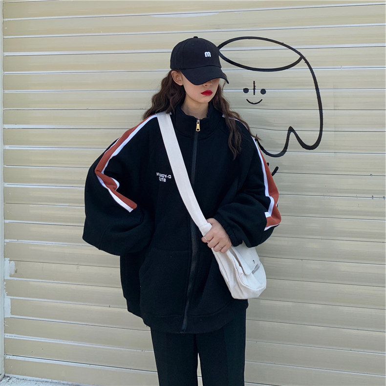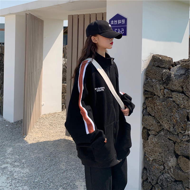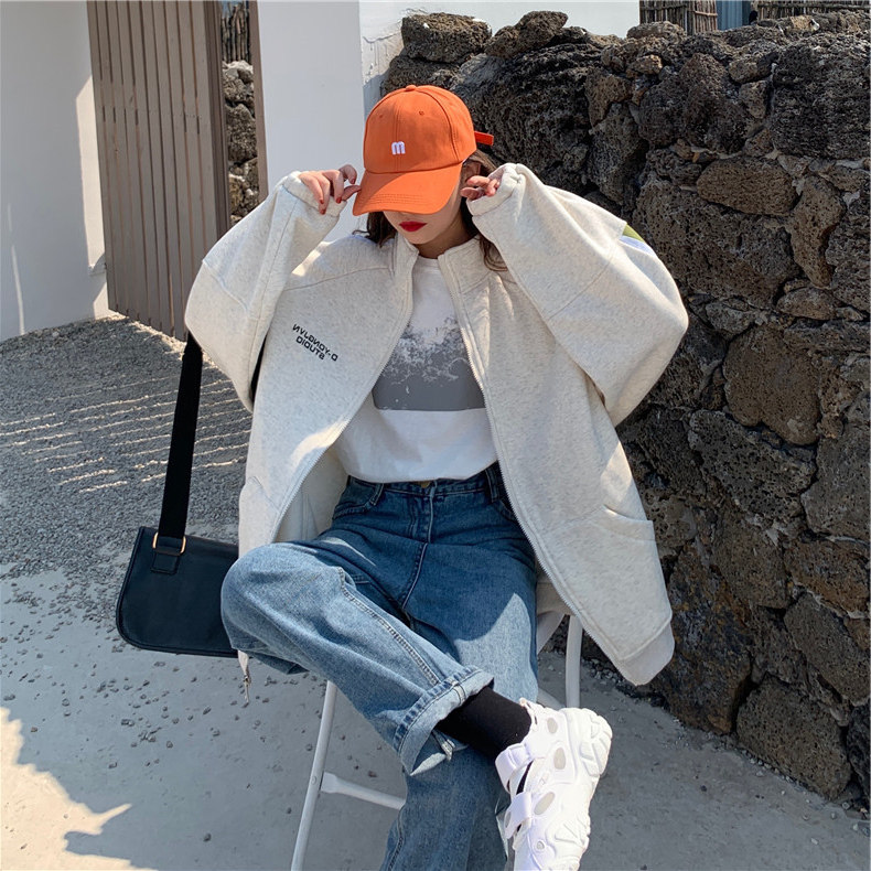 ins overfire sweatshirt woman autumn winter new gush thickened pull chain jacket Korean version student loose laziness clothes