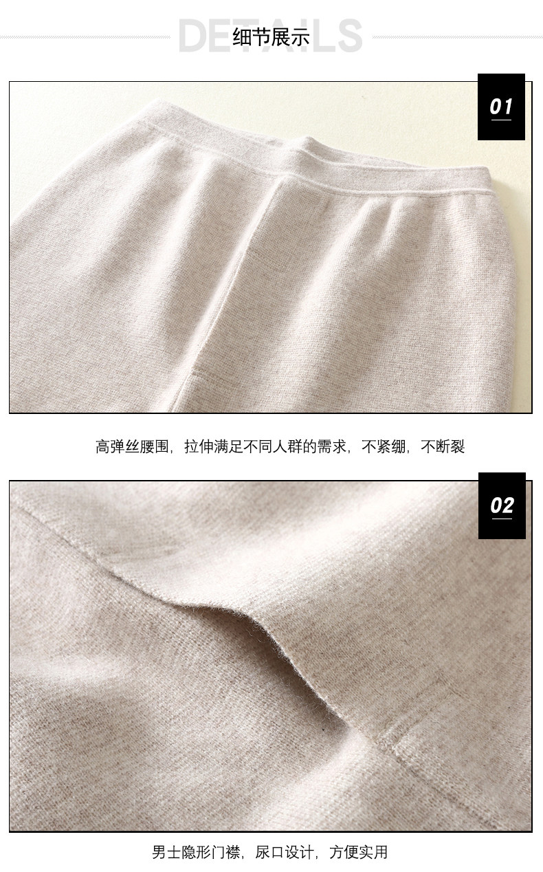 100% pure Kashmir wool pants thickened middle-aged full wool pants for men and women, warm base, solid color produced in Ordos