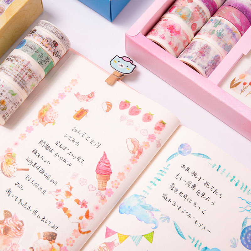 Hand Tent Adhesive Tape Stationery Suit Ventron Tent Special Material Girl Heart Printed and Paper Color Day of hand ledger This decorative character Cartoon Cute Little Fresh Text Graphic Sticker Rubberized-Taobao