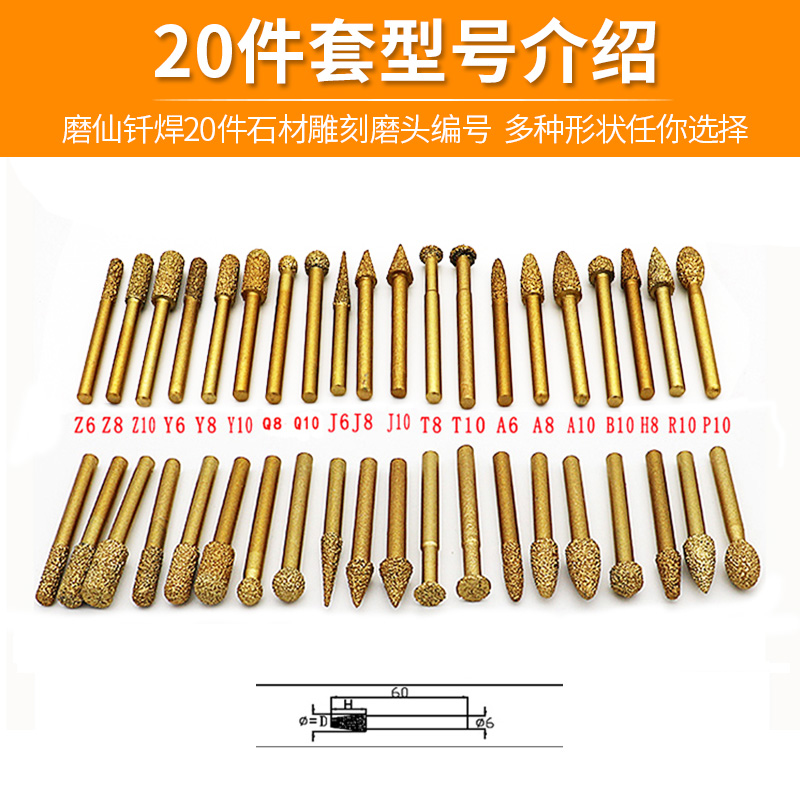 Grinding fairy brazing diamond 20 sets CNC carving knife stone ceramic jade carving grinding head grinding rod