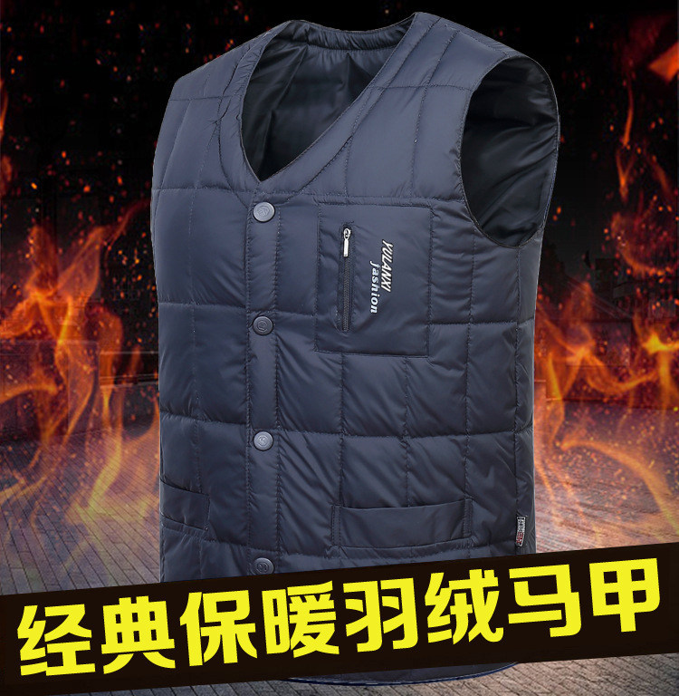 Autumn and winter middle-aged and elderly down vest men's short size vest shoulder thick warm horse clip liner down jacket