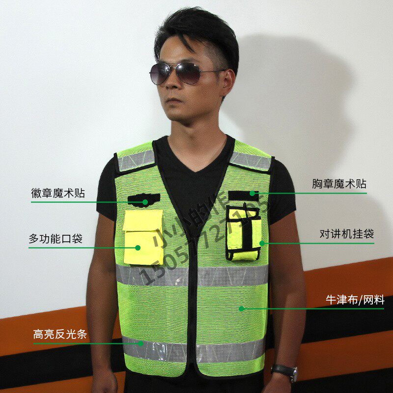Vehicle reflective vest locomotive traffic breathable mesh fabric night safety clothing security Inprint fluorescent waistcoat Custom