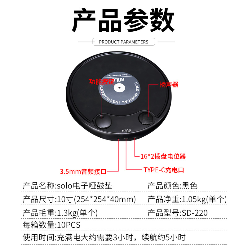 Solo Mute Drum Cushion Solo Mute Drum Cushion Rack (Pluggable) Eno Voice DT50 Black Mute Drum Bag Drum Rod Holder 12 "