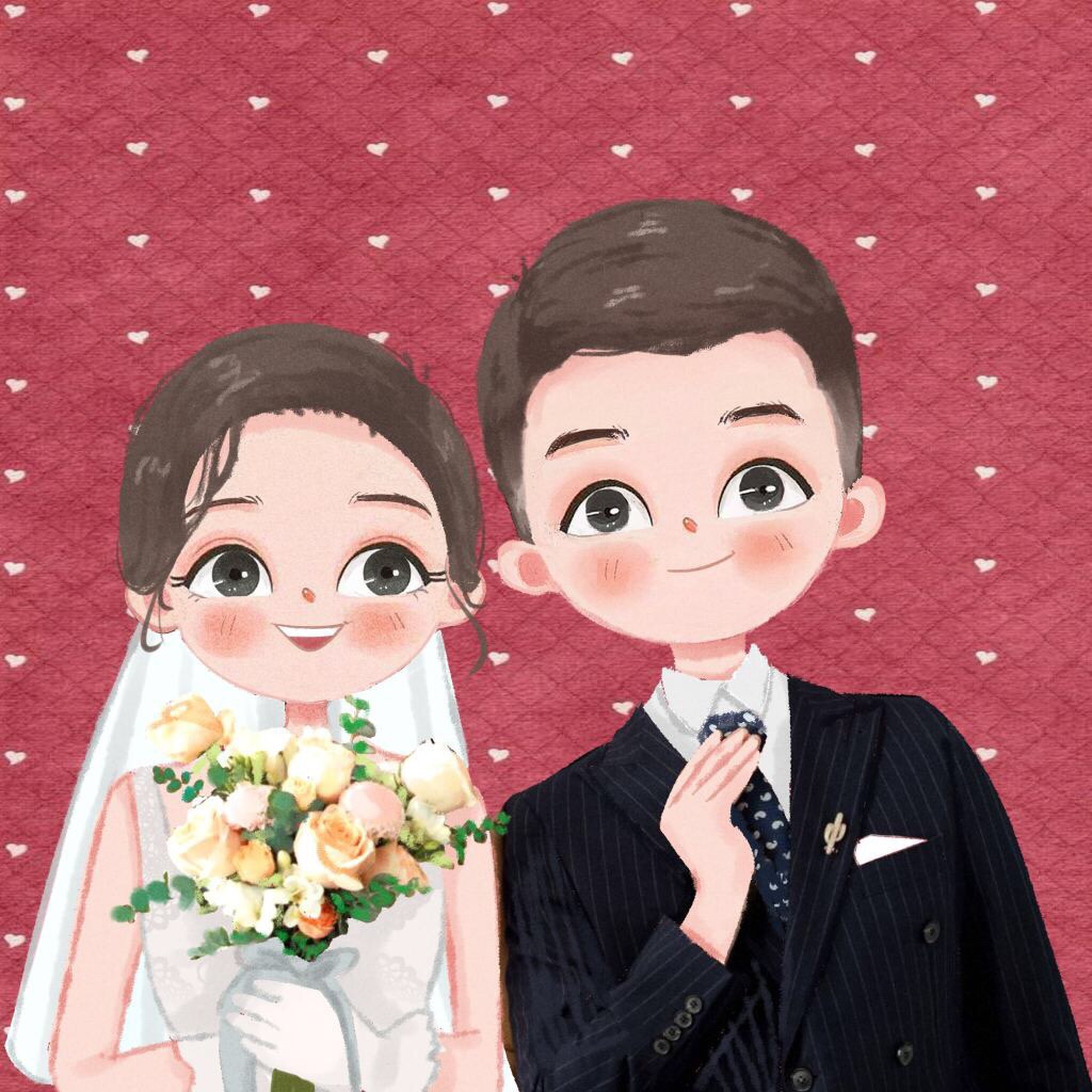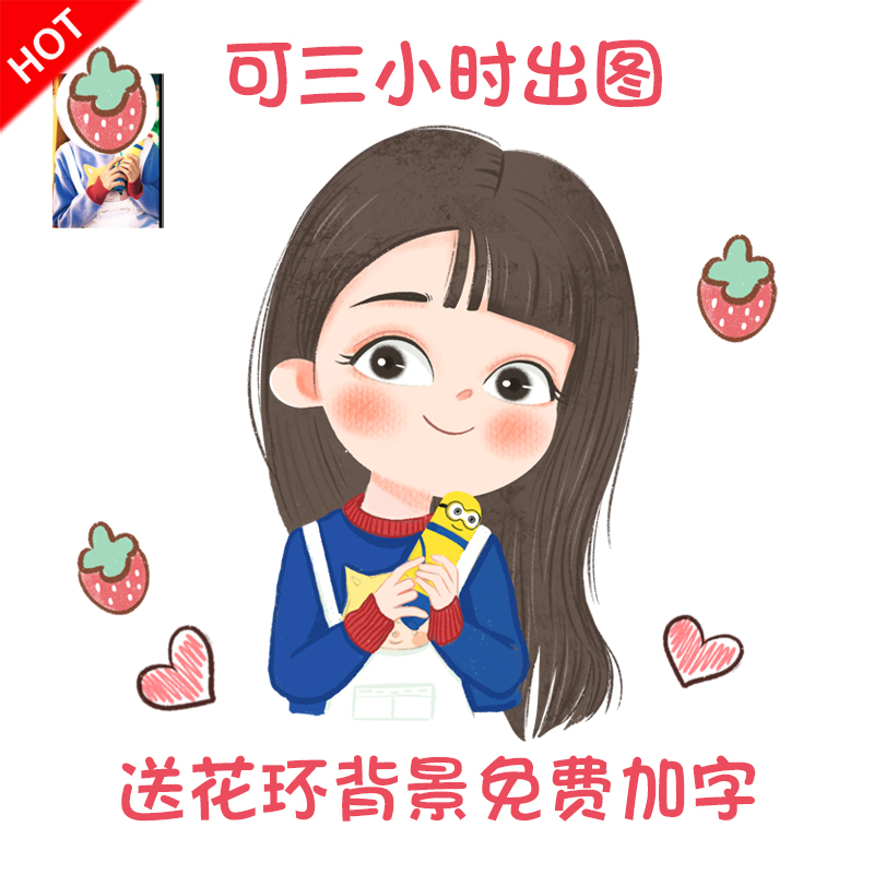 Q Prints Hand Painted Avatars Korean Style Wind Cute Cartoon Couple Portraits Custom Cartoon Live-action Photo Turn Hand-painted Avatar