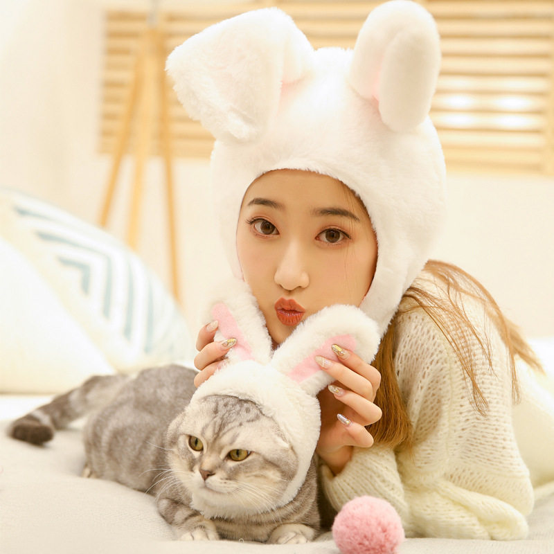 Pet cat dog dog white rabbit ear hat stand ear same adult small white rabbit shape cute sell cute photo