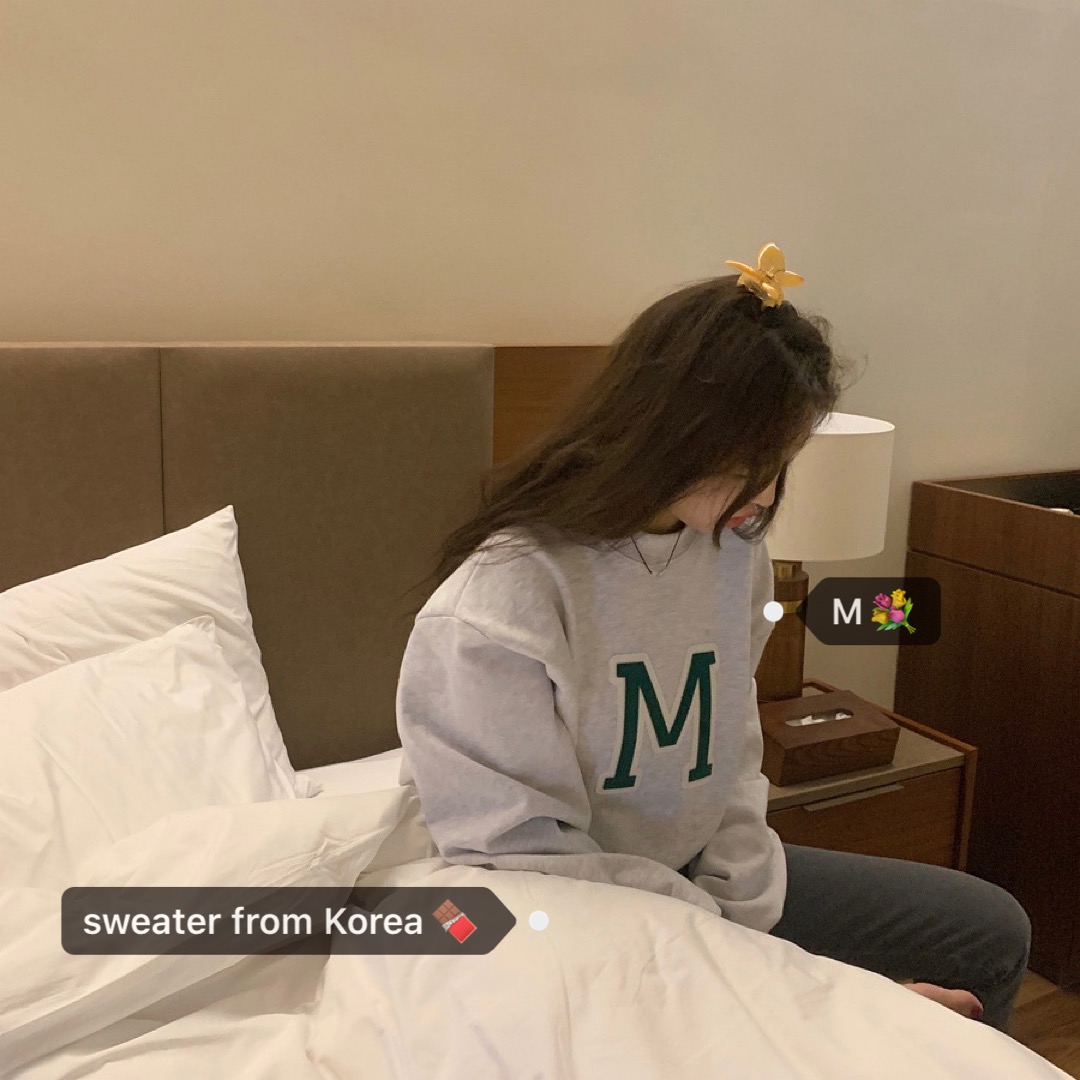 Classic grey green color maybebaby official web homemade letters M sweatshirt = IAC Korea