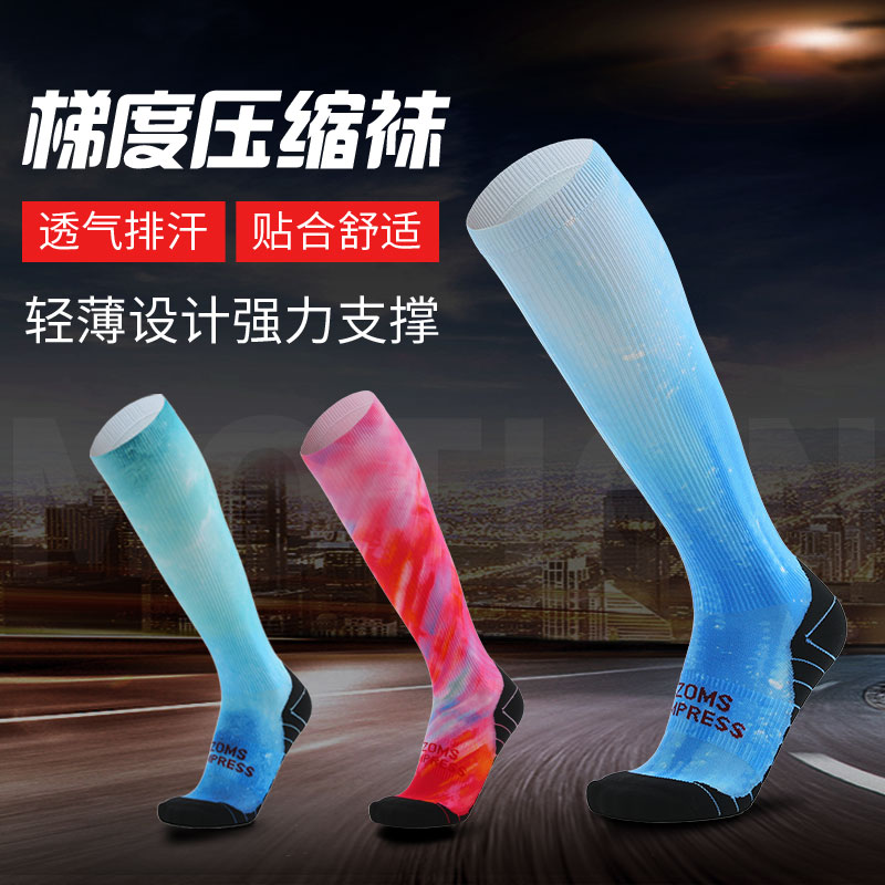 AZOMS Marathon Running Gradient Compression Yoga Long Tube Towels Fitness Antimuscle Leg Rainbow Sock