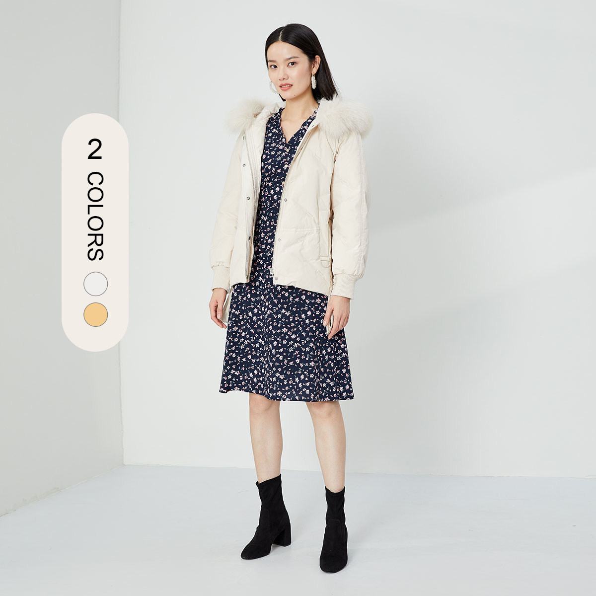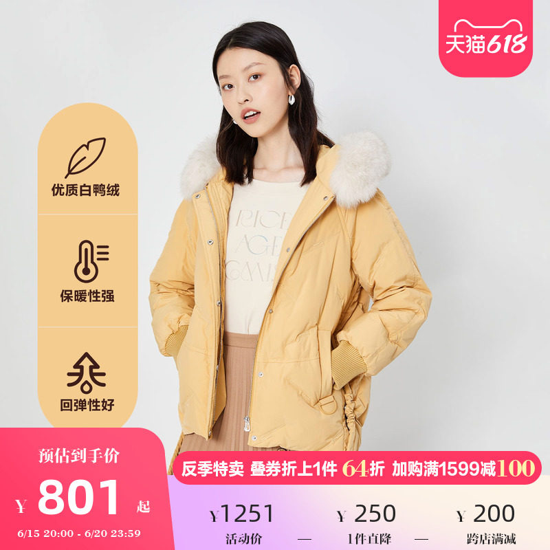PRICH Winter Female Short white duck suede wool collar with cap down jacket PRJDA8T03R