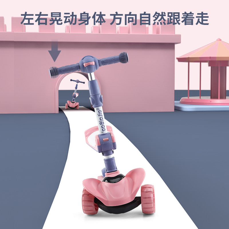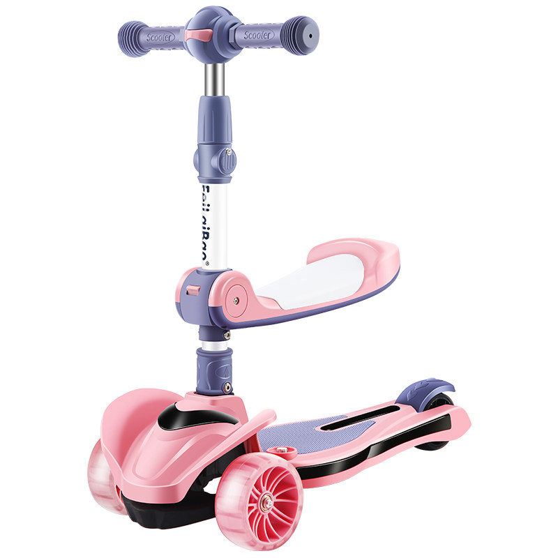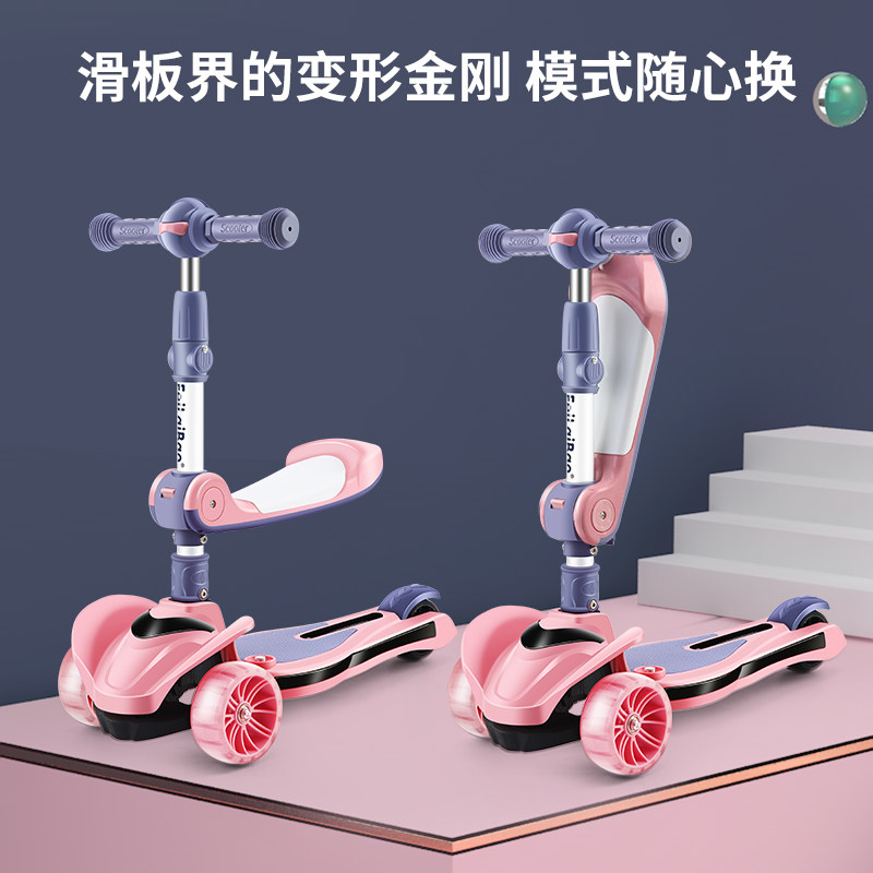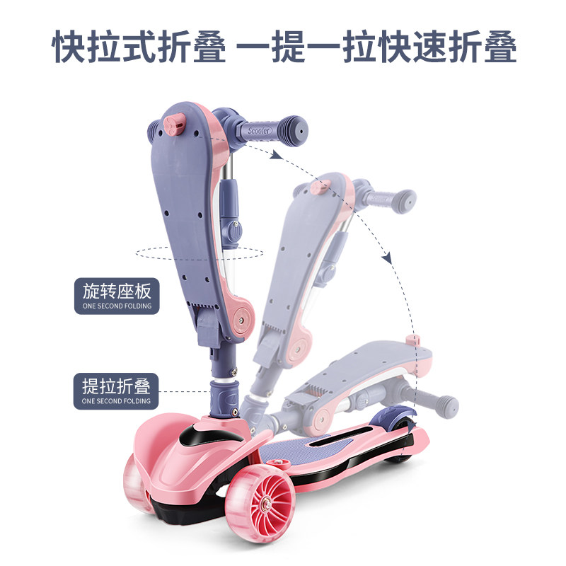 Three-in-one child scooter can sit on a sliding 1-2-6-8-year-old with four rounds of luminous stir-fry for the first time