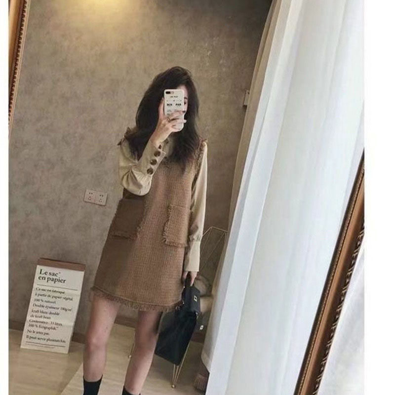 Autumn 2020 Young luxury socialite fried street temperament tea break bellflower French niche Long-sleeved dress Children's spring and autumn
