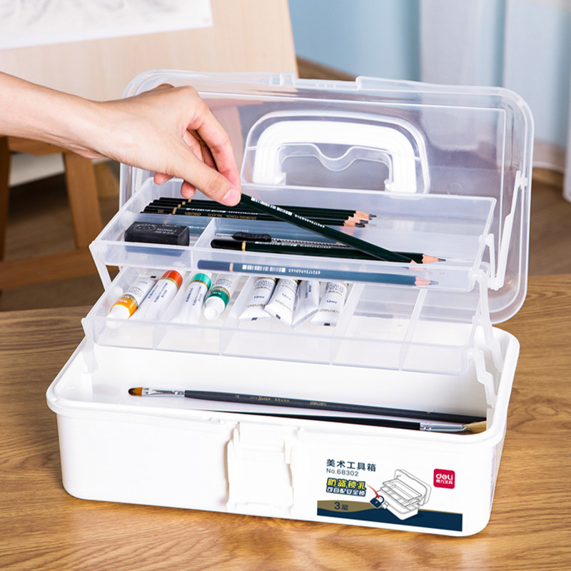Dili art student toolbox transparent household three-layer stationery box art storage gouache plastic student Picture Box