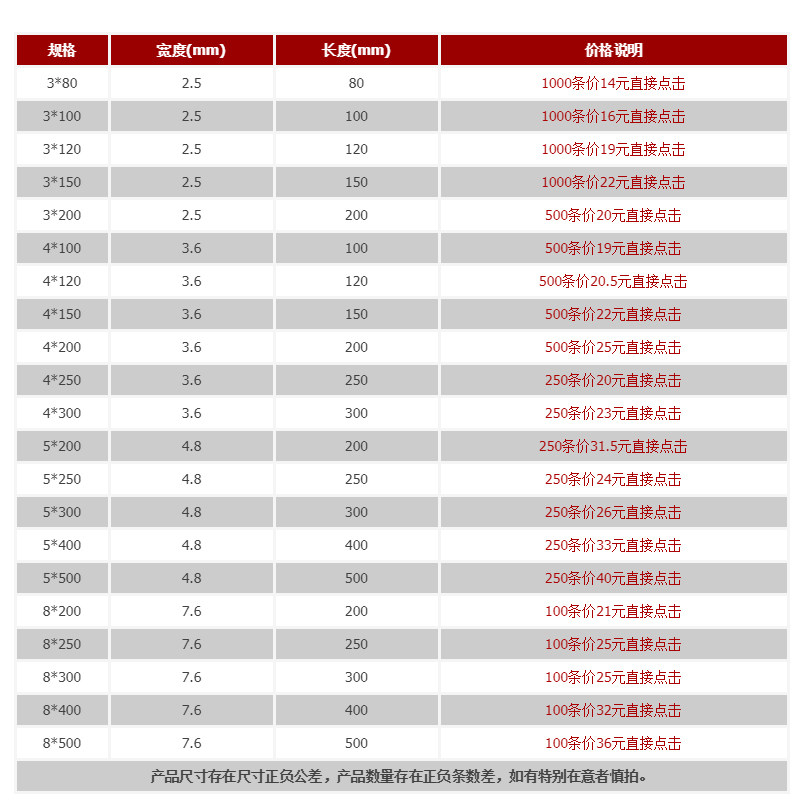 3 * 80mm Width 2 5mm 1000 strips 3 * 100mm Width 2 5mm 1000 strips 3 * 120mm Width 2 5mm 1