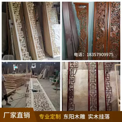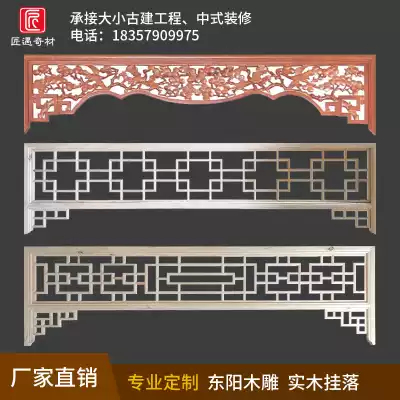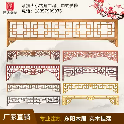 Dongyang wood carving Solid wood flower grid hanging Chinese hollow lintel carving Temple corridor Water Pavilion Sijiao Pavilion corridor RP