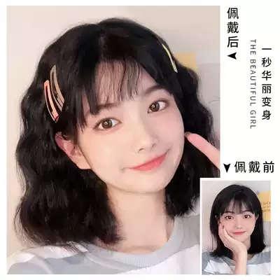 Wig female short hair Korean hairstyle wool roll full head round face repair fluffy natural wave head bangs wig