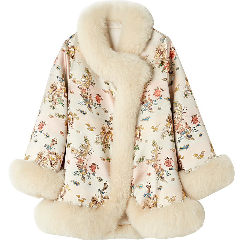 2020 Autumn Winter New Fox Fur Straw Jacket Woman China Wind Palace Tin satin noodles with long nail Pearl Dowl cloak