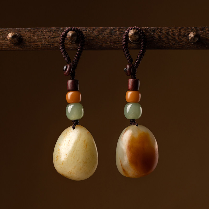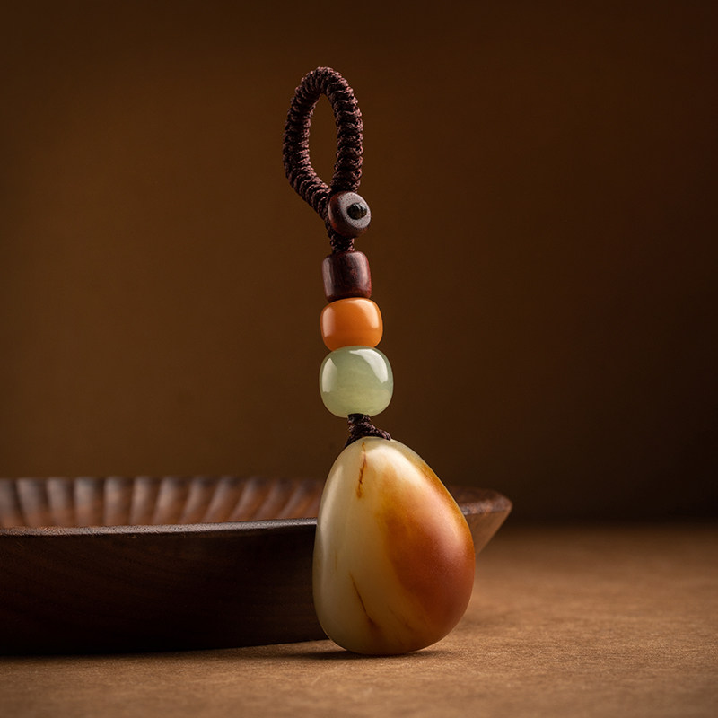 Free edge orphan Hetian jade car key chain pendant men and women personality creative antique jade small pendant pendant
