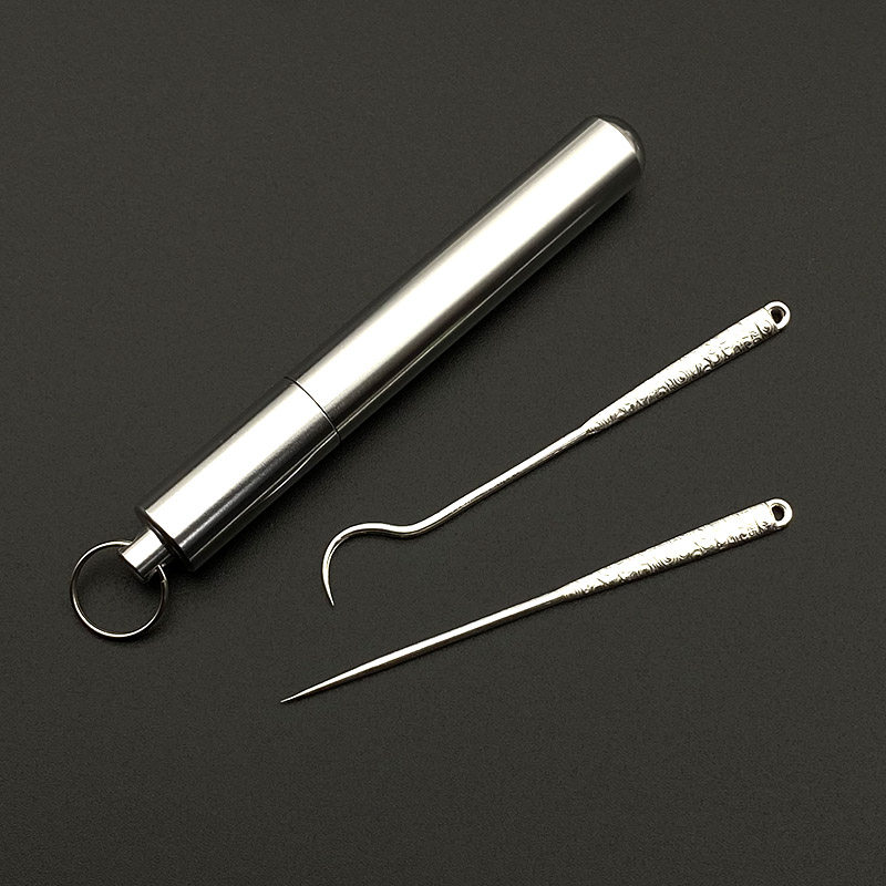 Advanced Pure Silver Toothpicks Portable Toothpicks Hook Ultrafine Tips Precious Metal Teeth Cleaners with Toothpick Cylinder Mini
