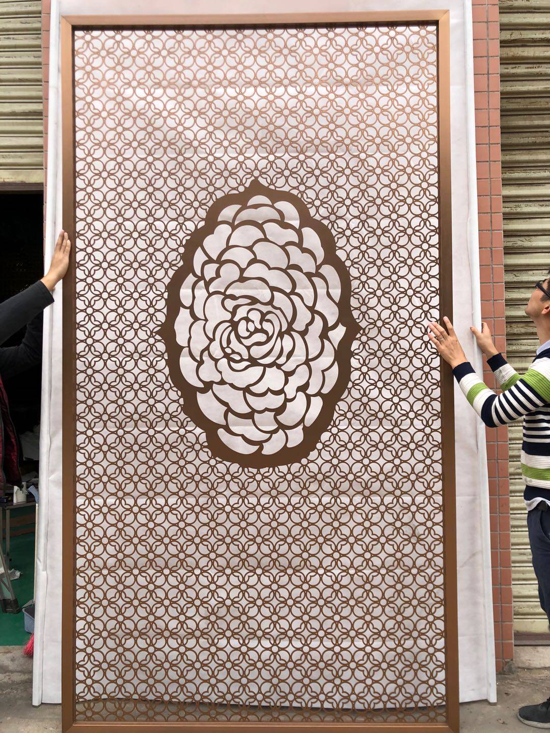The hotel decoration black titanium stainless steel screen flower lattice rose gold Chinese red bronze partition skeleton laser