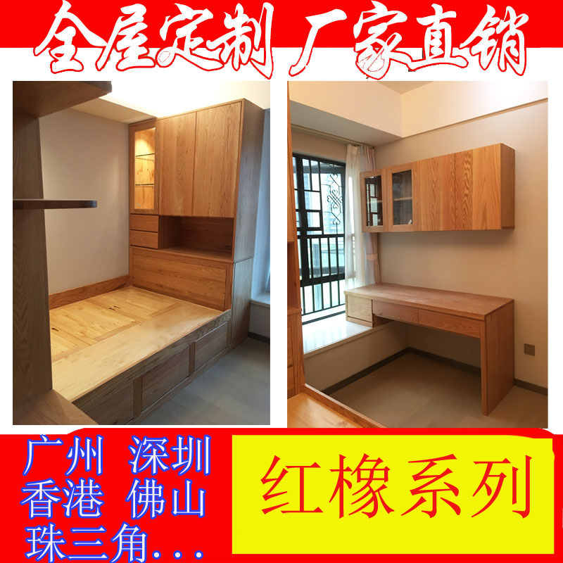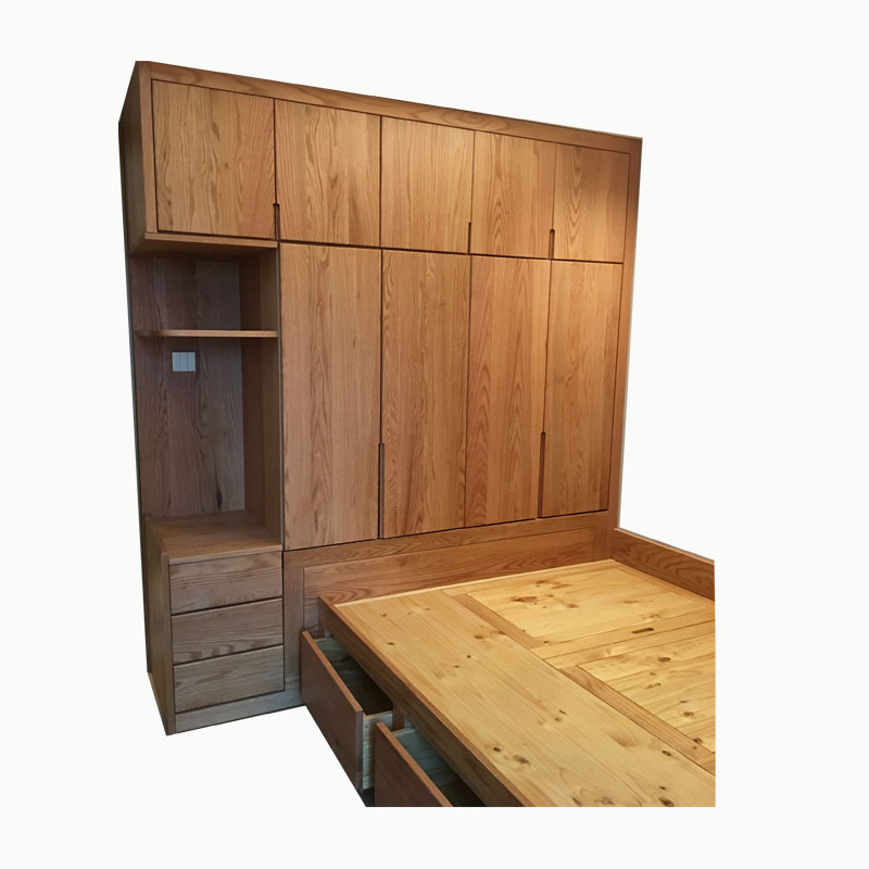 Brief Modern Full House Custom Red Oak Full Wood Log Furniture Factory Direct Tatami Combined Wardrobe Ramen