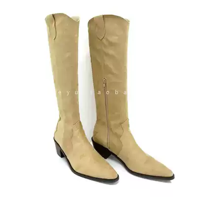 Korean western cowboy boots women's long boots spring and autumn new pointed retro British style high-barrel riding boots