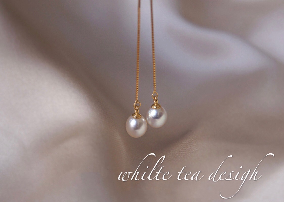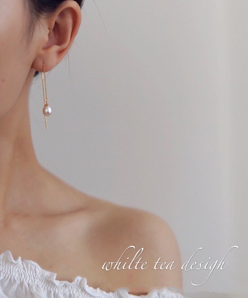 White tea's new IF · U strong light rice-shaped freshwater real pearl earrings 14k gold-packed earrings are simple and versatile