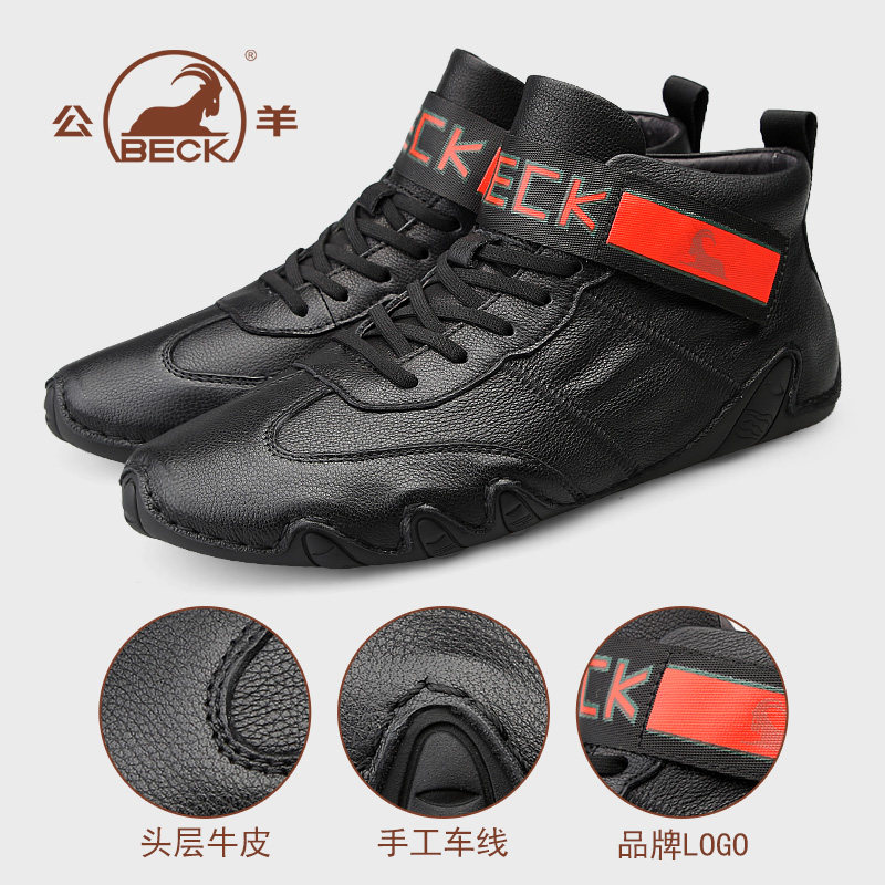 Ram men's shoes 2021 new autumn casual high-top shoes tooling short boots British style men's leather shoes men's genuine leather
