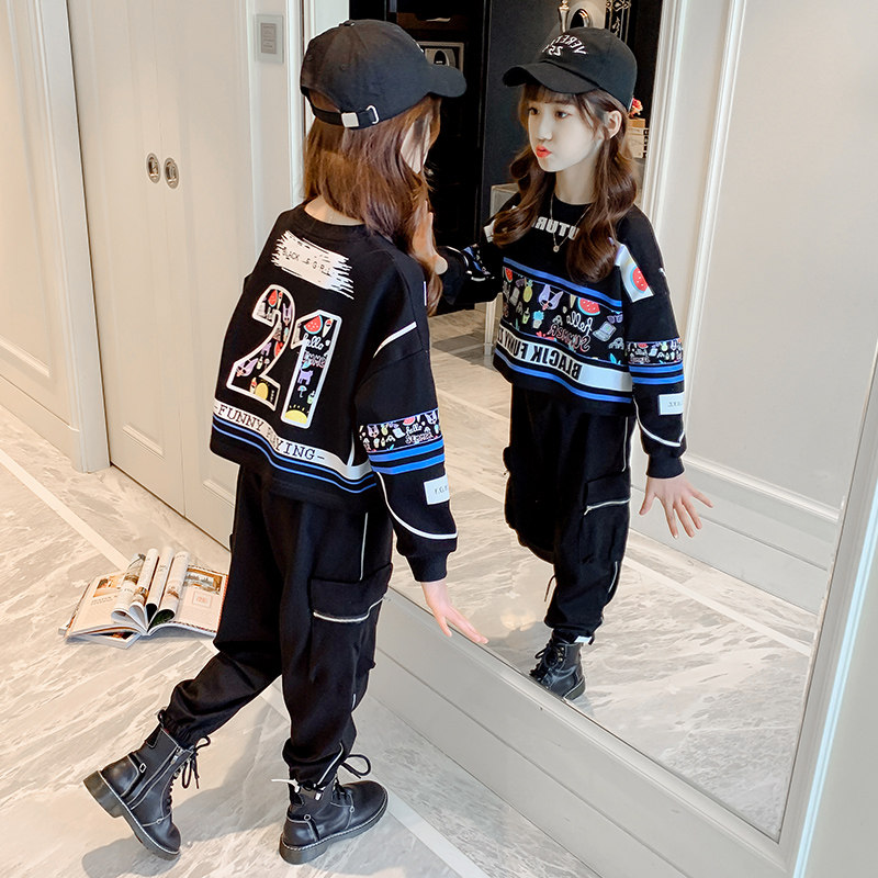 Girls spring suit 2022 new net celebrity children's suit fashionable hip-hop trendy big kids Western style sports two-piece suit