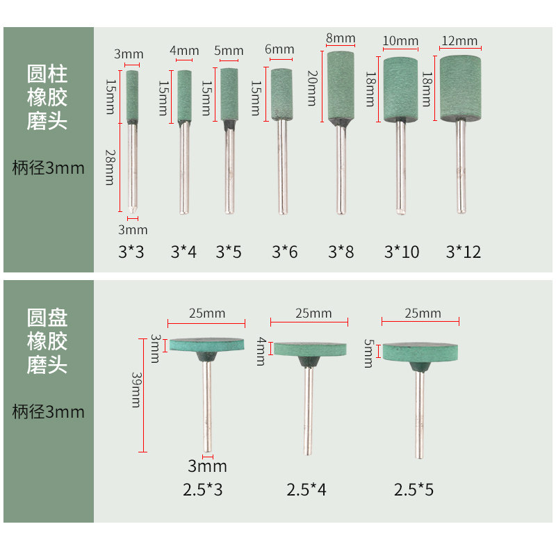 3*3 Cylindrical rubber grinding head (100 pcs) 3*4 Cylindrical rubber grinding head(100 pcs) 3*5 Cylindrical rubber grinding head(100 pcs) 3*6 Cylindrical rubber grinding head